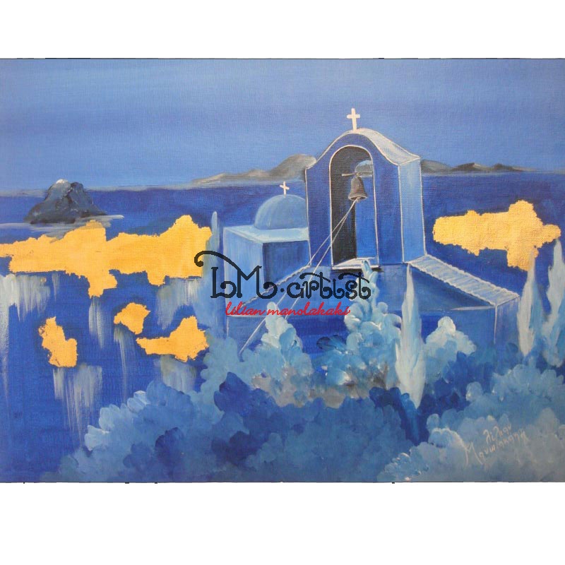 Λάδια σε φύλλο μουσαμά & φύλλο χρυσού 40Χ50 cm