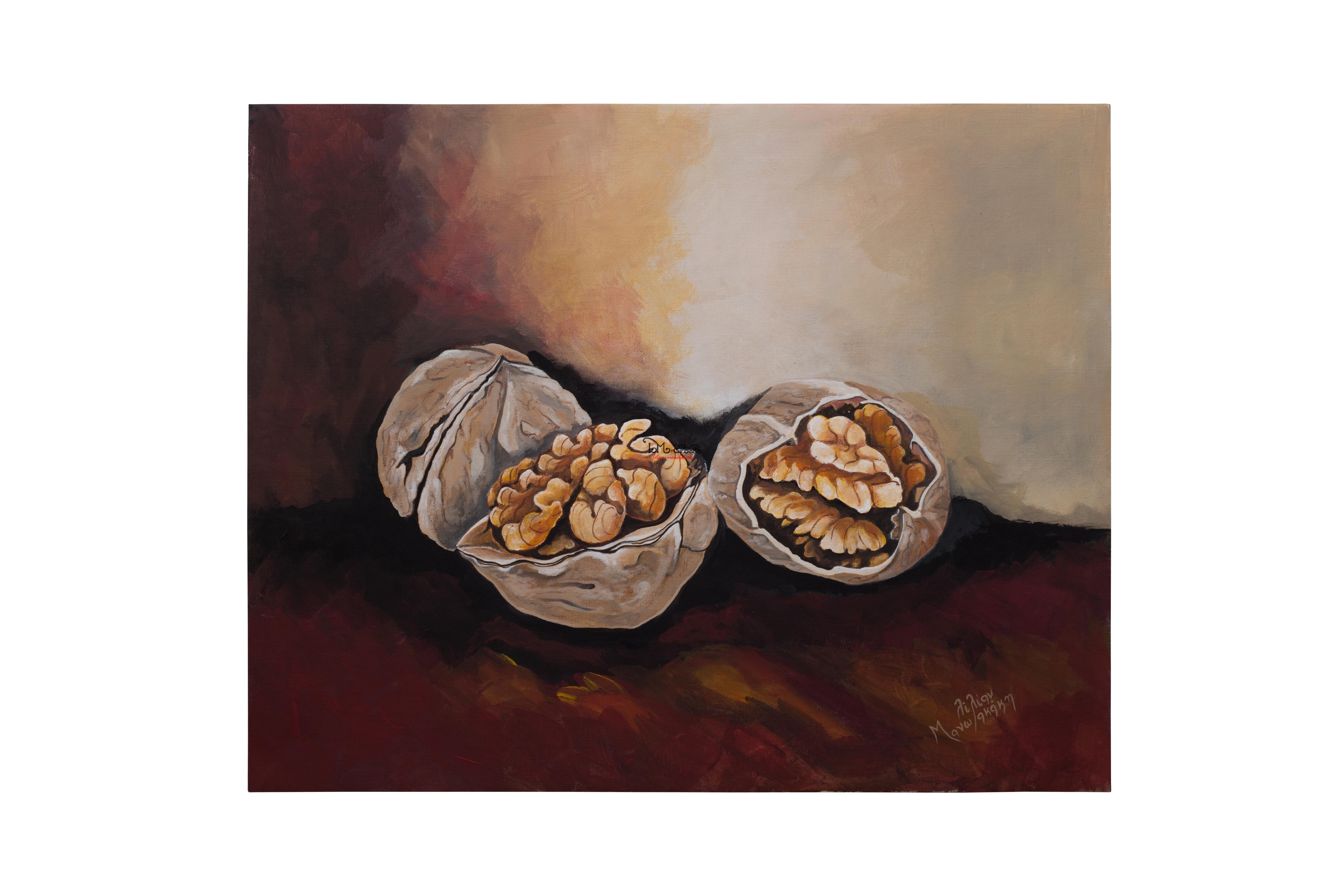 Καρύδια σε φύλλο μουσαμά, ζωγραφική 40Χ50 cm