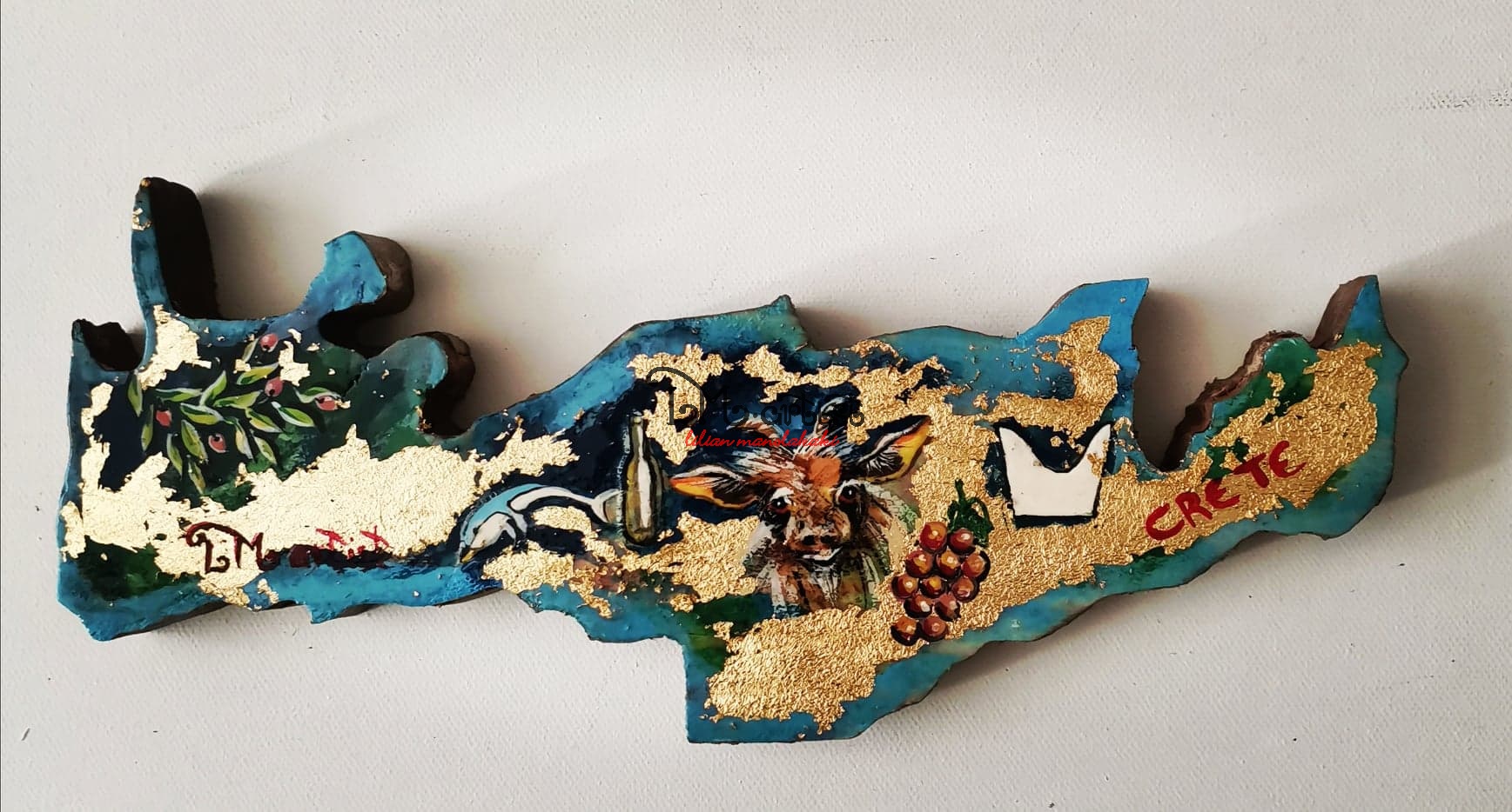 Κρήτη ξυλόγλυπτο ζωγραφισμένο στο χέρι με φύλλα χρυσού 24X8X2