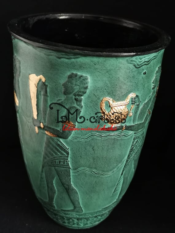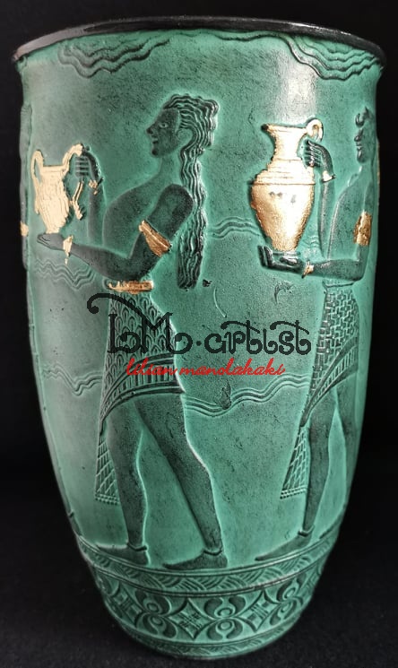 Κεραμικό διακοσμητικό βάζο, με φύλλο χρυσού ,Κρητική τέχνη 21Χ12,5