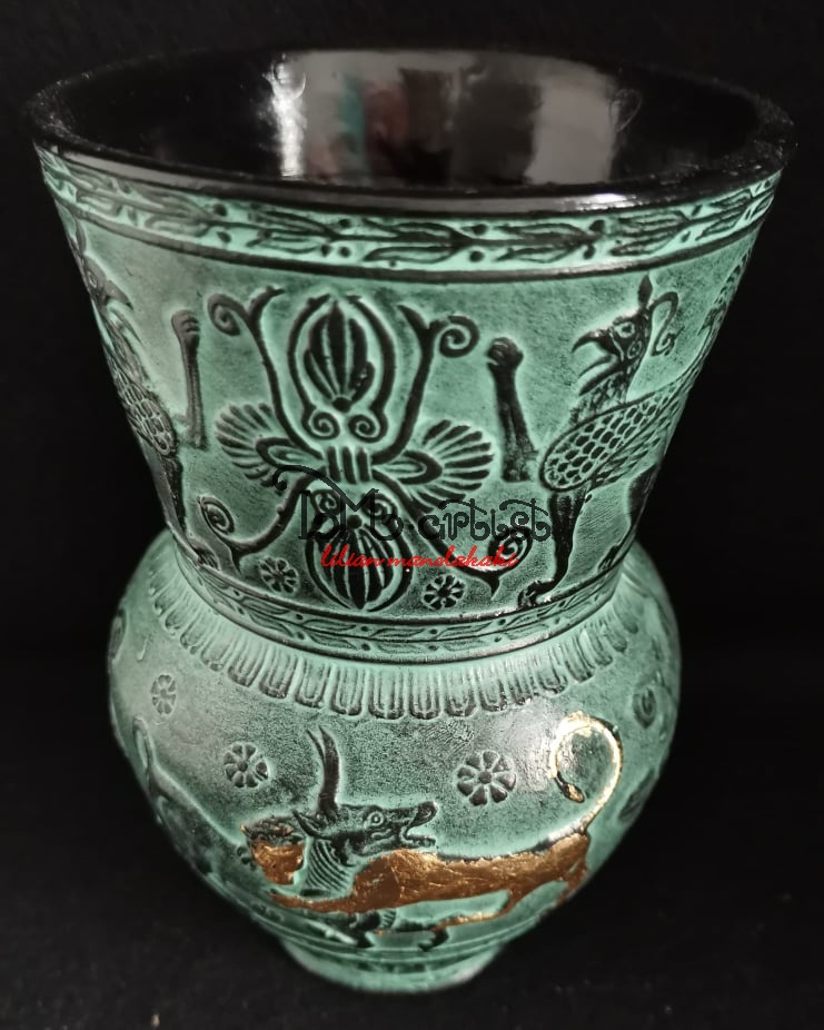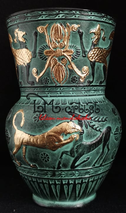 Κεραμικό διακοσμητικό βάζο, με φύλλο χρυσού ,Κρητική τέχνη 15Χ9,5
