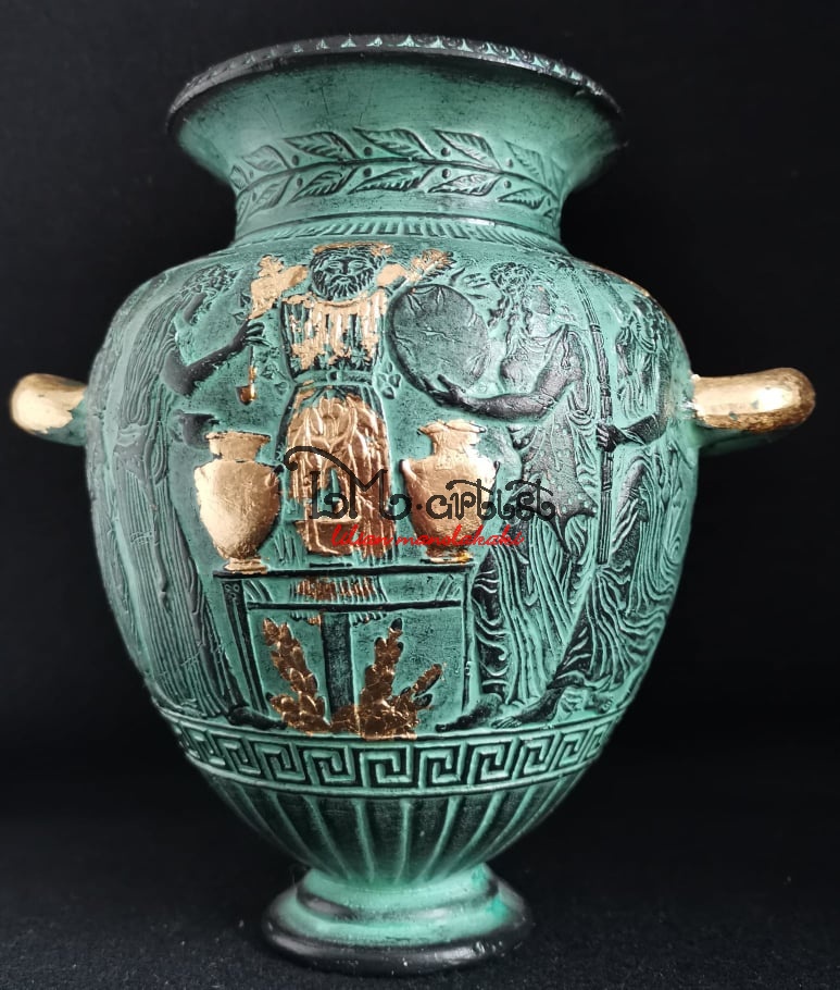 Κεραμικό διακοσμητικό βάζο, με φύλλο χρυσού ,Κρητική τέχνη 18X13