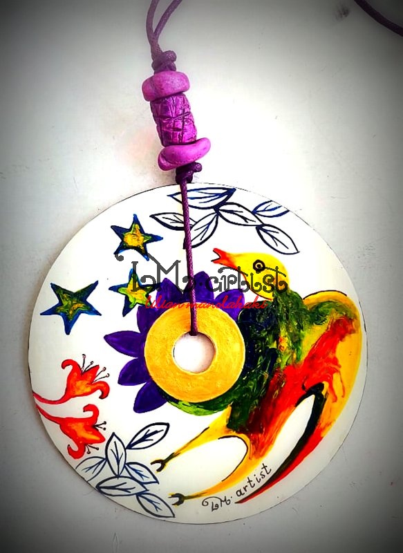 CD Κολιέ, ζωγραφική στο χέρι Μινωικό θέμα. Ανακύκλωση και δημιουργικότητα α ιδιαίτερο κόσμημα,μακρύ με κεραμικές χάντρες