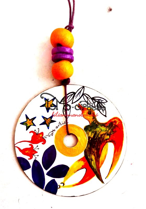 CD Κολιέ, ζωγραφική στο χέρι Μινωικό θέμα Ένα ιδιαίτερο κόσμημα, ανακύκλωση και δημιουργικότητα