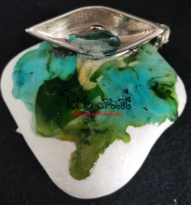 Βαρκούλα σε μάρμαρο Θάσου 7Χ6Χ3 περίπου Τεχνοτροπίας, υγρό γυαλί σμάλτα άμμος, μεταλλική ασημί βαρκούλα