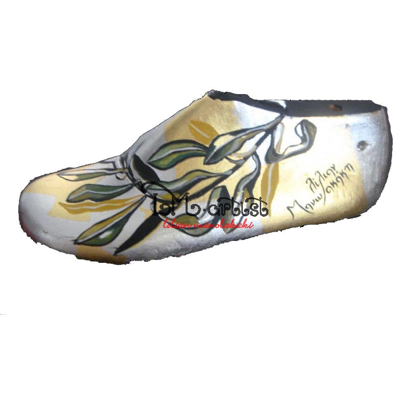 Καλαπόδι( Φόρμα για παπούτσια) φυσικό ξύλο,ζωγραφική με φύλλα χρυσού και ασήμι, ζωγραφική στο χέρι κλαδί ελιάς