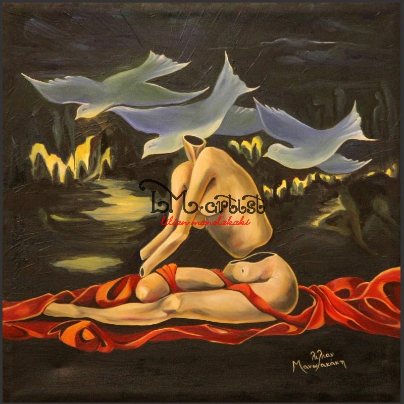 η Δίνη της μοναξιάς ρουφάει την φλόγα και σου ζεσταίνει την καρδιά.......... Λάδια σε μουσαμά 50Χ70Χ4,5