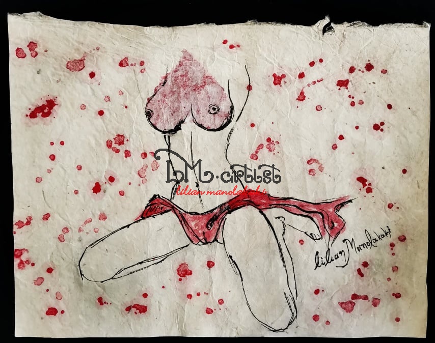 Υδατογραφία σε χειροποίητο διπλό χαρτί,εσωτερικά χάρτινη καρδιά 31Χ23,5cm Ζωγραφικά με μελάνια