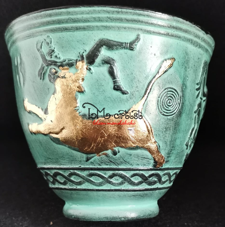 Κεραμικό διακοσμητικό βάζο, με φύλλο χρυσού ,Κρητική τέχνη 9X10,5