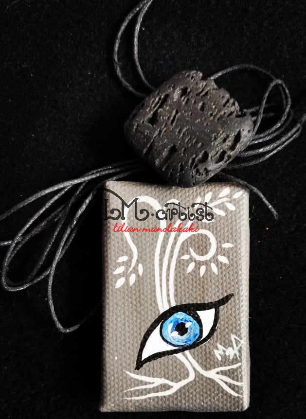 Τελαράκι κολιέ, καμβάς 6,3X4cm Ζωγραφική στο χέρι Γούρι προσωπικό για καλή τύχη. Χάντρα τετράγωνη λάβα
